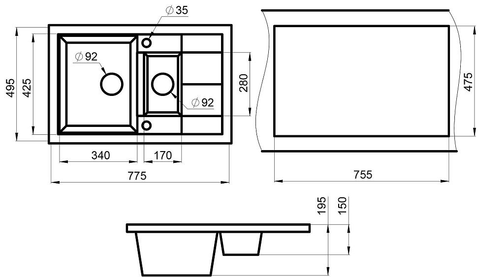 Кухонная мойка Kuppersberg MODENA 60 NL 1,5B1D ANTHRACITE