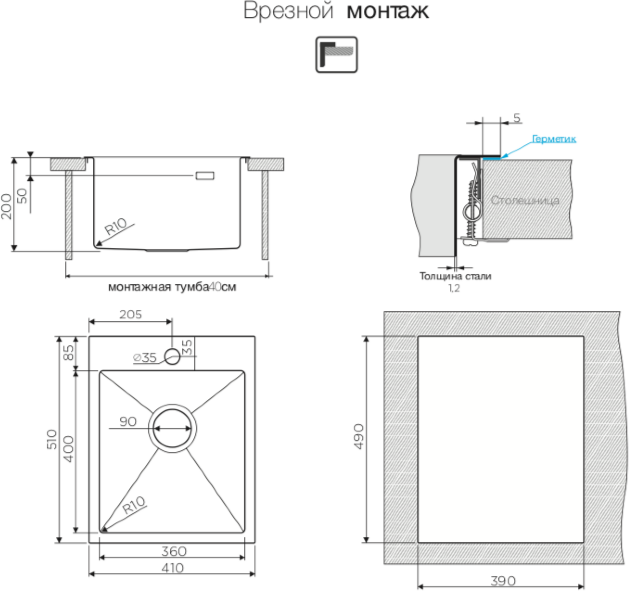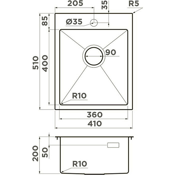 - Кухонная мойка изготовлена из высококачественной хромоникелевой нержавеющей стали SUS304. Она содержит 18% хрома и 8% никеля, что обеспечивает её максимальную защиту от коррозии;