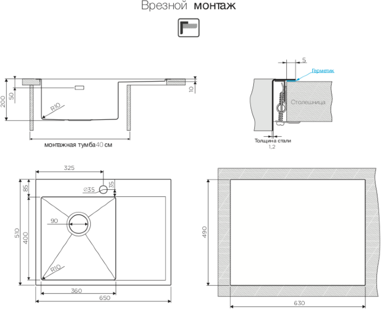 - Самый важный показатель у мойки из нержавеющей стали - толщина стали, ведь чем она тоньше, тем менее твердой, надежной и долговечной будет мойка. Для качественной мойки лучше выбирать толщину выше 0,6 мм. Мойки данного бренда имеют толщину от 0,7 до 1,2 мм;