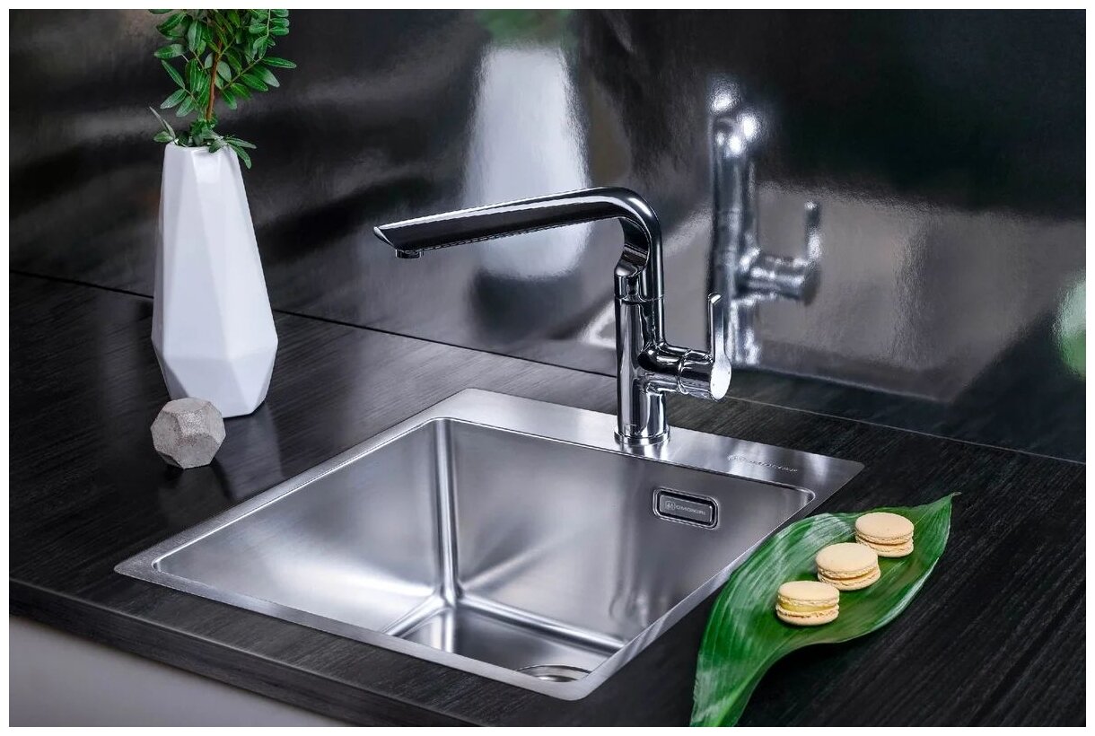 - Кухонная мойка изготовлена из высококачественной хромоникелевой нержавеющей стали SUS304. Она содержит 18% хрома и 8% никеля, что обеспечивает её максимальную защиту от коррозии;