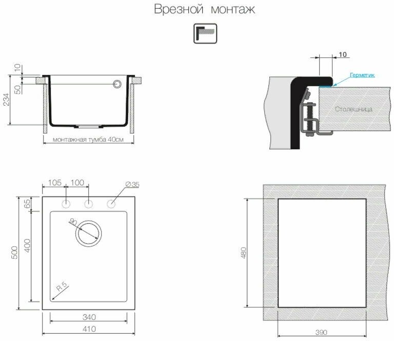- Материал выдерживает высокие температуры до 280°С (но не стоит ставить на поверхность мойки горячие сковородки и кастрюли, т.к их температура может достигать 500°С).