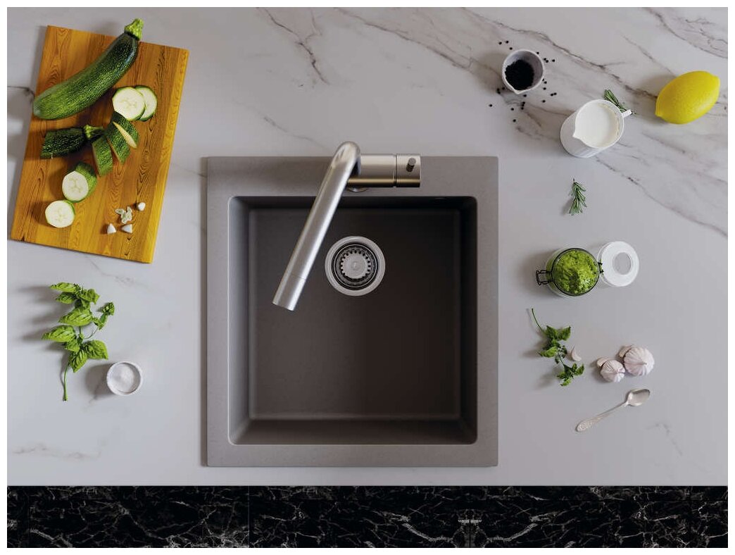 - Мойки из устойчивы к механическим повреждениям. Входящий в состав кварцевый песок представляет собой кристаллическую структуру, что придаёт мойке устойчивость к воздействию различных кислот и щелочей, гарантируя неизменность внешнего вида мойки;