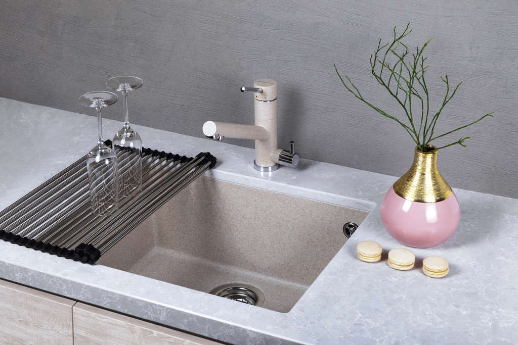 - Материал выдерживает высокие температуры до 280°С (но не стоит ставить на поверхность мойки горячие сковородки и кастрюли, т.к их температура может достигать 500°С).