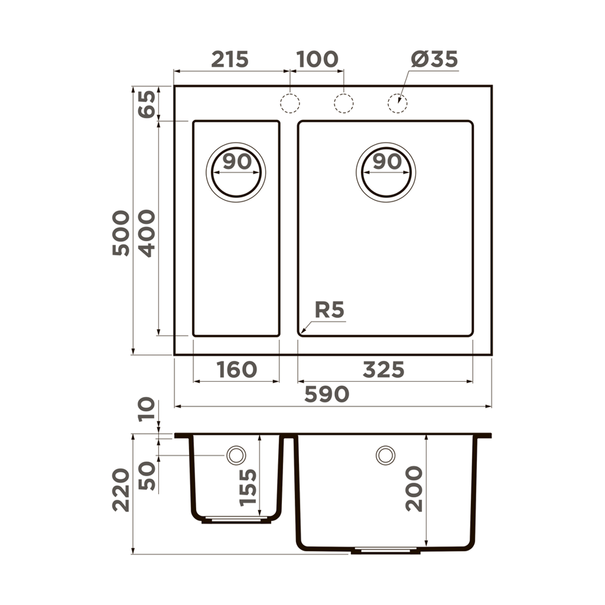 Скачать документы для Кухонная мойка Omoikiri Bosen 59-2-GR серый 4993558