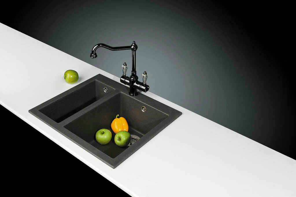- Кухонная мойка изготовлена из матриала «Tetogranit», технология производства которого заключается в том, что частицы гранита, кварцевый песок и акриловую смолу объединяют в пресс-форме и обжигают при высокой температуре. Далее, для обеззараживания поверхности добавляют ионы серебра и волокна теторона (Tetoron), благодаря которым, на всём протяжении эксплуатации моек не происходит развитие бактерий, плесени и грибка. Также, при изготовлении моек из «Tetogranit» применяется специальный способ окрашивания частиц гранита: на их поверхность при температуре выше 700°С наносится пигмент, который за счет высокотемпературного нанесения проникает во внутренние структуры камня;