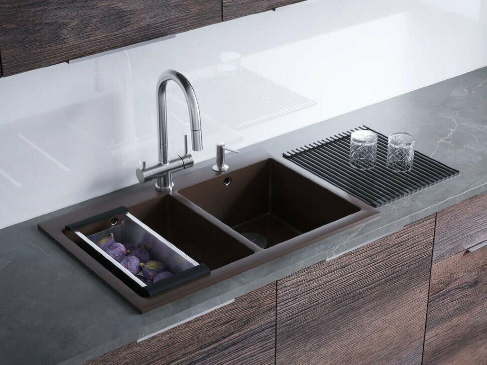 - За счет окрашивания каждой частицы гранитного материала при помощи специальной технологии, первоначальный цвет мойки гарантировано сохраняется в течение всего срока службы;