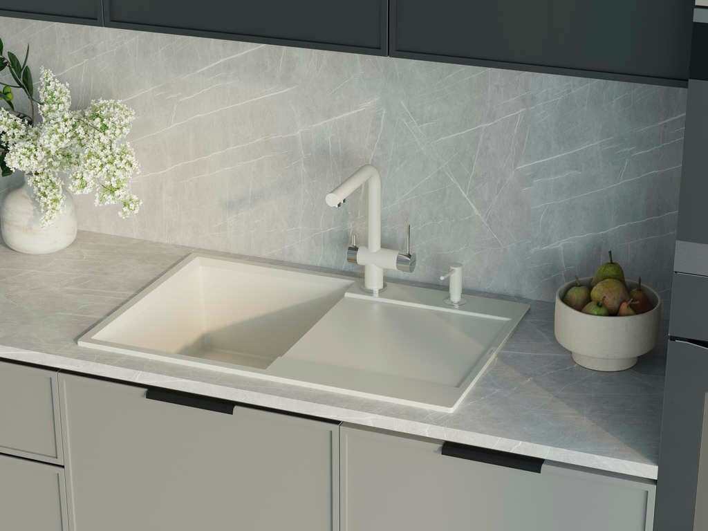 - Материал выдерживает высокие температуры до 280°С (но не стоит ставить на поверхность мойки горячие сковородки и кастрюли, т.к их температура может достигать 500°С).