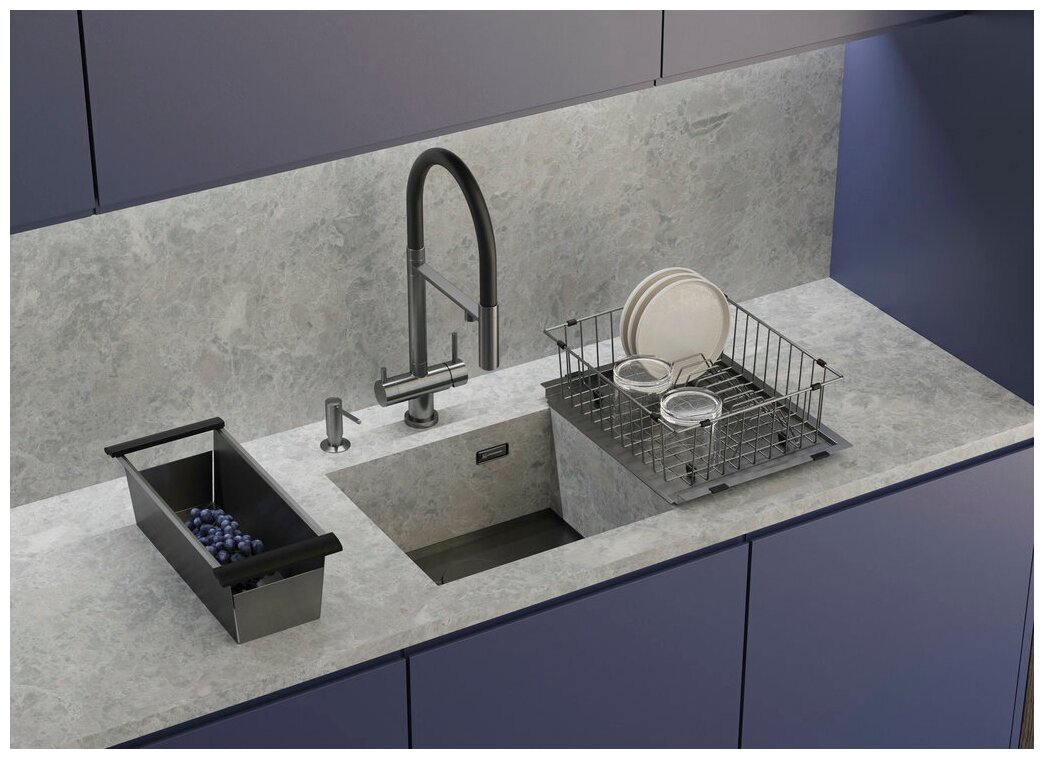 - Кухонная мойка изготовлена из высококачественной хромоникелевой нержавеющей стали SUS304. Она содержит 18% хрома и 8% никеля, что обеспечивает её максимальную защиту от коррозии;