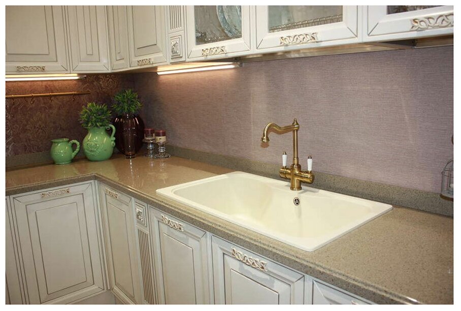 - Материал выдерживает высокие температуры до 280°С (но не стоит ставить на поверхность мойки горячие сковородки и кастрюли, т.к их температура может достигать 500°С).