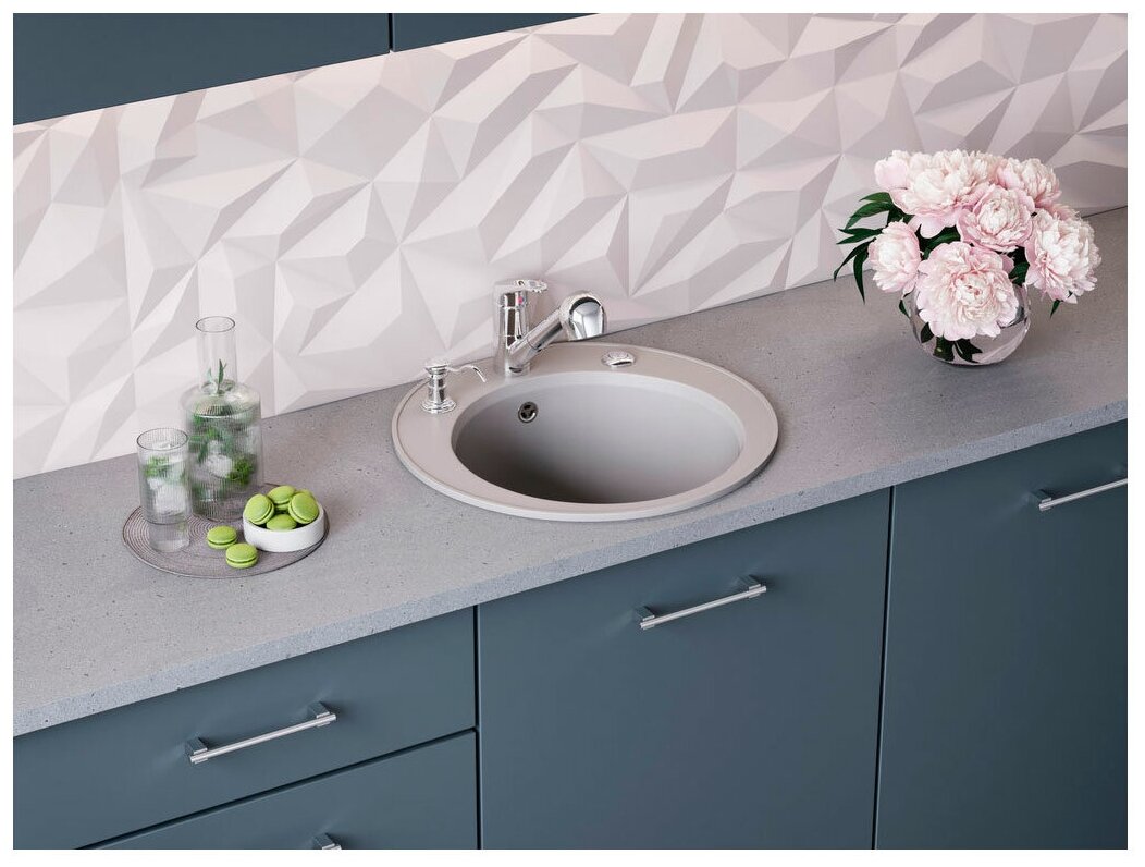 - Мойки из «Tetogranit» устойчивы к механическим повреждениям. Входящий в состав кварцевый песок представляет собой кристаллическую структуру, что придаёт мойке устойчивость к воздействию различных кислот и щелочей, гарантируя неизменность внешнего вида мойки;