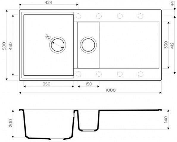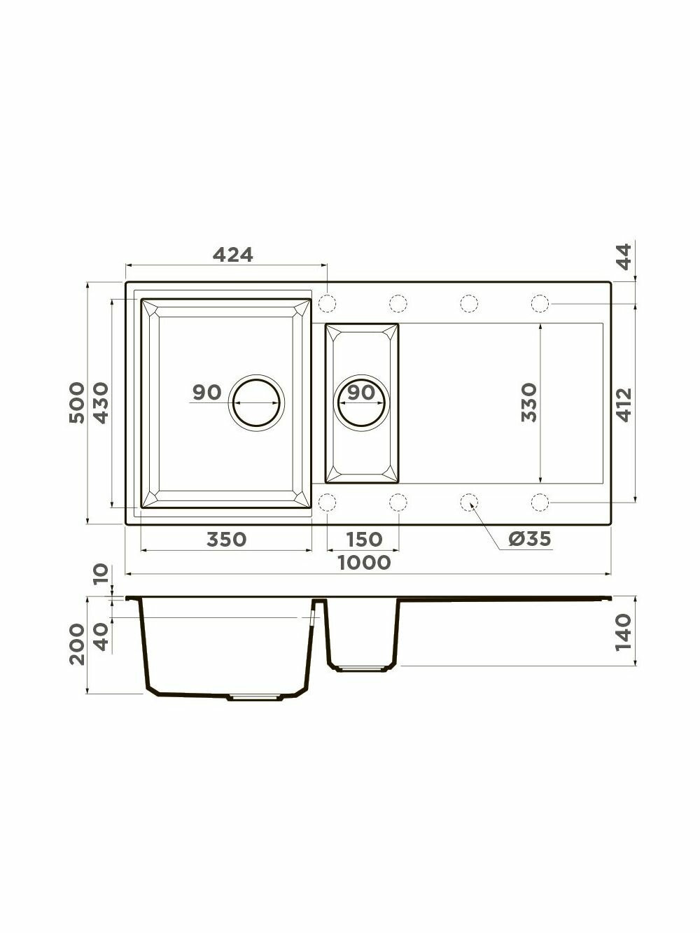 дополнительная чаша, две чаши, дополнительная чаша,отверстие под смеситель, отверстие под смеситель, с крылом