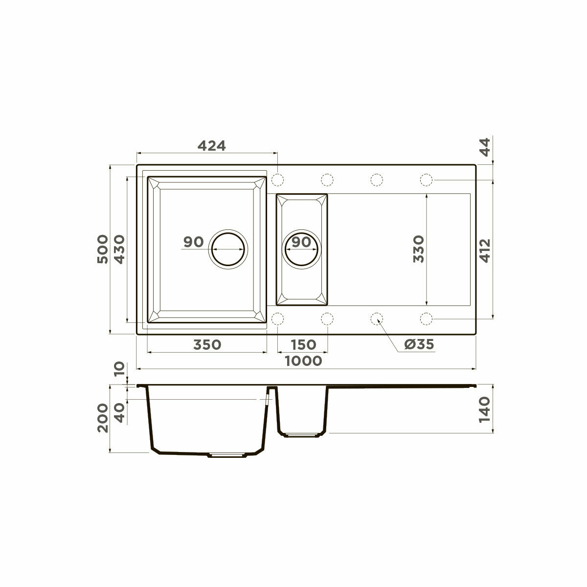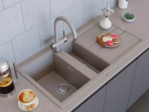 - Материал выдерживает высокие температуры до 280°С (но не стоит ставить на поверхность мойки горячие сковородки и кастрюли, т.к их температура может достигать 500°С).