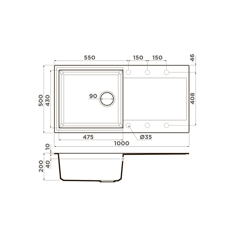 - Материал выдерживает высокие температуры до 280°С (но не стоит ставить на поверхность мойки горячие сковородки и кастрюли, т.к их температура может достигать 500°С).