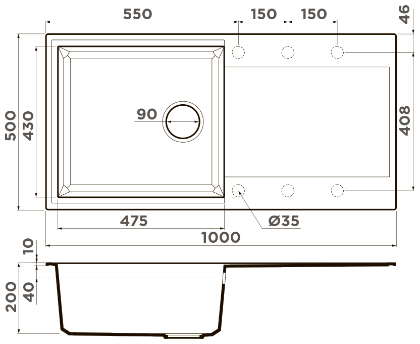 - За счет окрашивания каждой частицы гранитного материала при помощи специальной технологии, первоначальный цвет мойки гарантировано сохраняется в течение всего срока службы;
