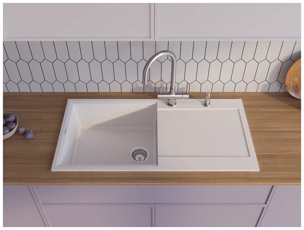 - Материал выдерживает высокие температуры до 280°С (но не стоит ставить на поверхность мойки горячие сковородки и кастрюли, т.к их температура может достигать 500°С).