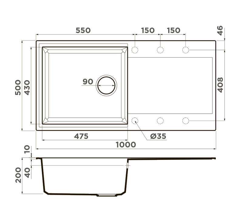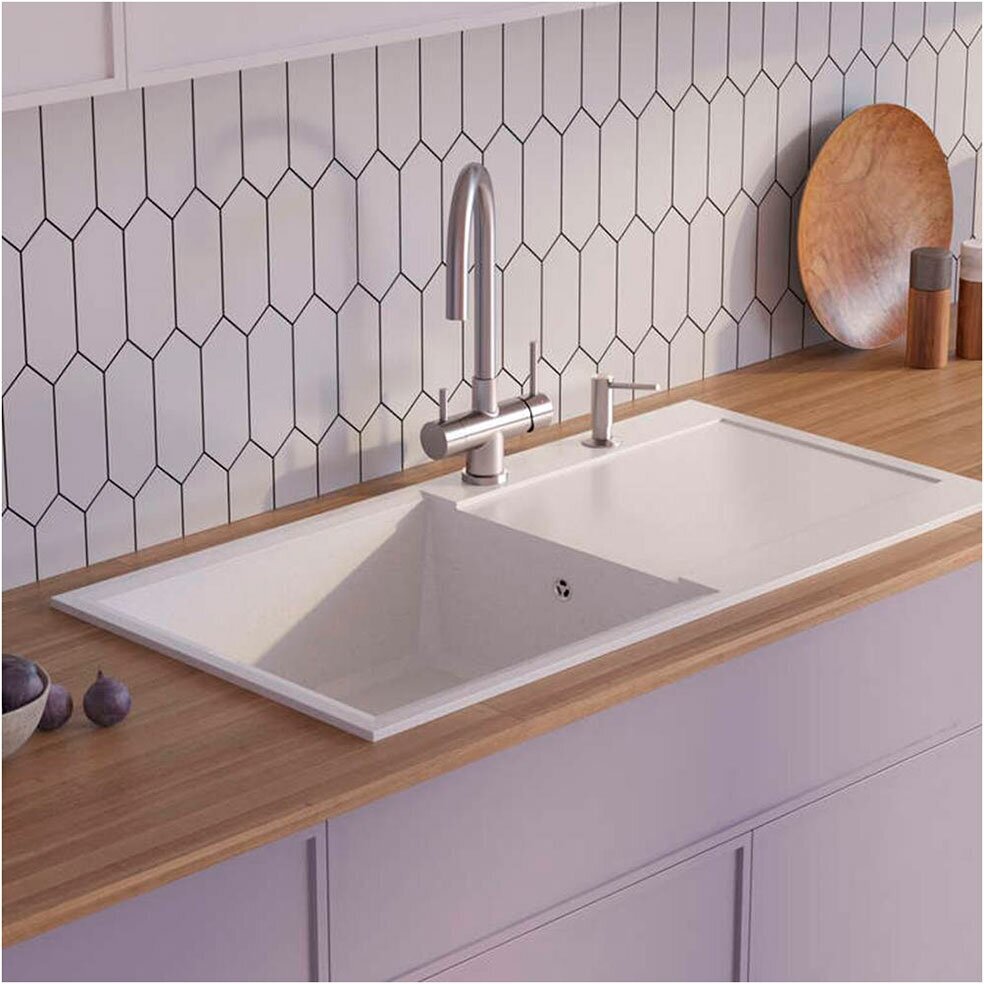 - Материал выдерживает высокие температуры до 280°С (но не стоит ставить на поверхность мойки горячие сковородки и кастрюли, т.к их температура может достигать 500°С).