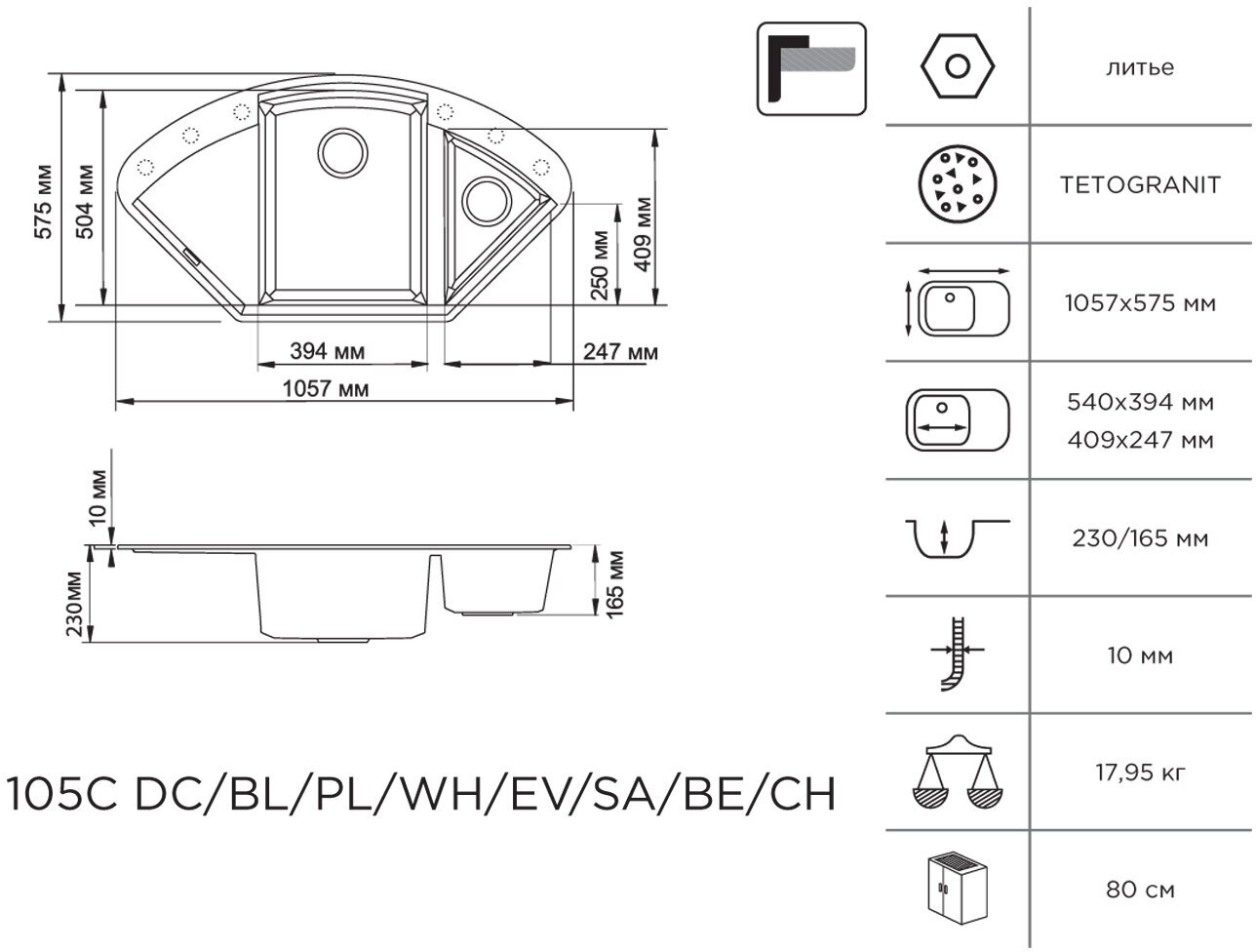 - За счет окрашивания каждой частицы гранитного материала при помощи специальной технологии, первоначальный цвет мойки гарантировано сохраняется в течение всего срока службы;