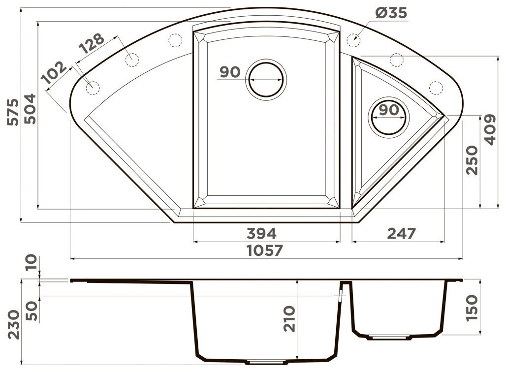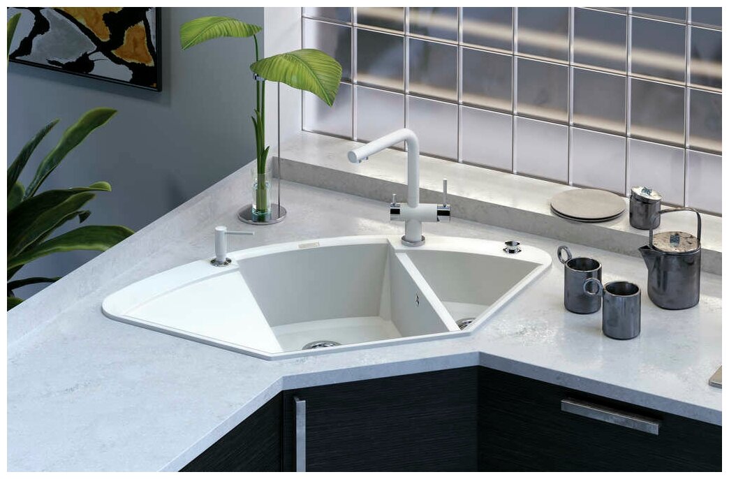 дополнительная чаша, угловая, антибактериальная защита, две чаши, дополнительная чаша,отверстие под смеситель,сливная арматура,угловая,клапан-автомат, клапан-автомат, корзинчатый вентиль, отверстие под смеситель, с крылом, сливная арматура