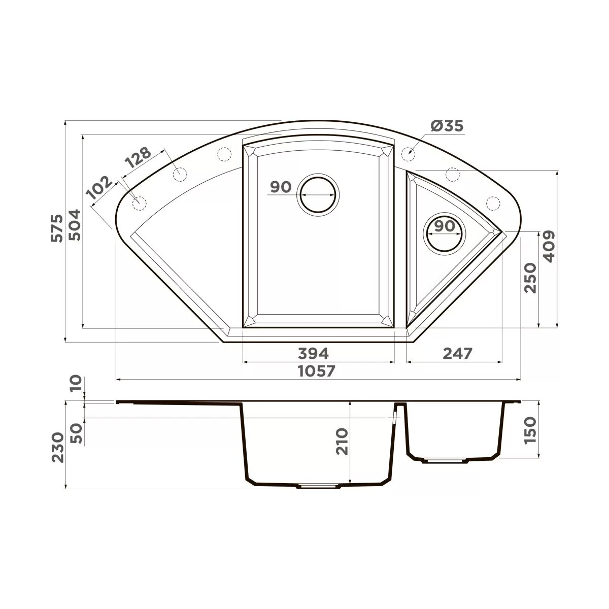 дополнительная чаша, угловая, клапан-автомат, отверстие под смеситель, сливная арматура