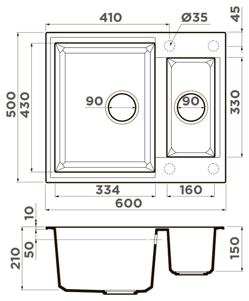 - За счет окрашивания каждой частицы гранитного материала при помощи специальной технологии, первоначальный цвет мойки гарантировано сохраняется в течение всего срока службы;