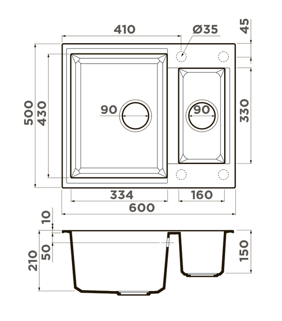 - За счет окрашивания каждой частицы гранитного материала при помощи специальной технологии, первоначальный цвет мойки гарантировано сохраняется в течение всего срока службы;