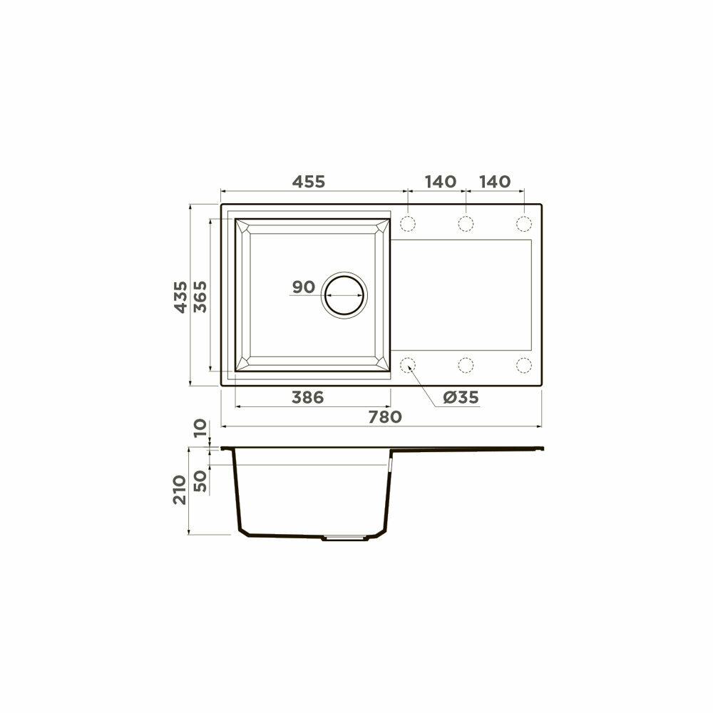 - Материал выдерживает высокие температуры до 280°С (но не стоит ставить на поверхность мойки горячие сковородки и кастрюли, т.к их температура может достигать 500°С).