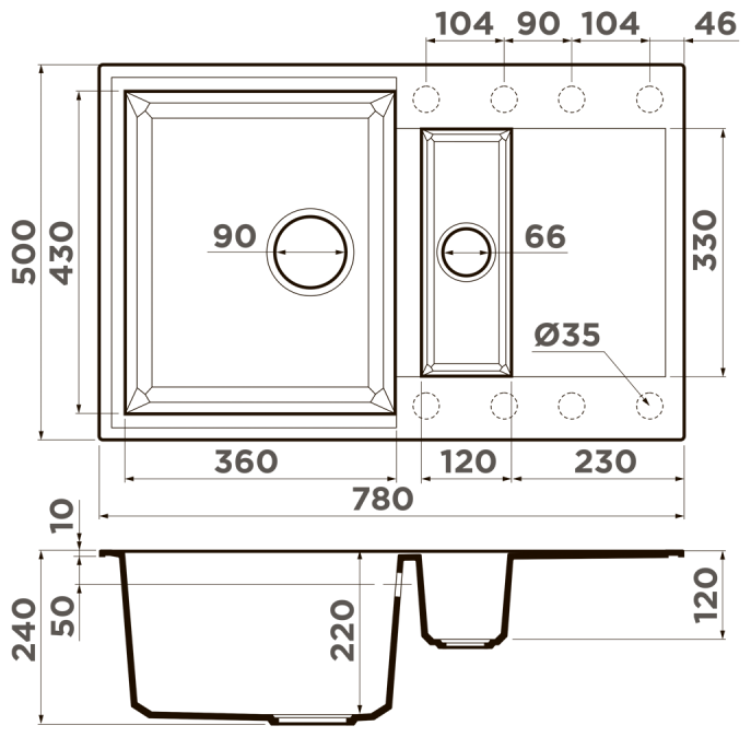 - За счет окрашивания каждой частицы гранитного материала при помощи специальной технологии, первоначальный цвет мойки гарантировано сохраняется в течение всего срока службы;