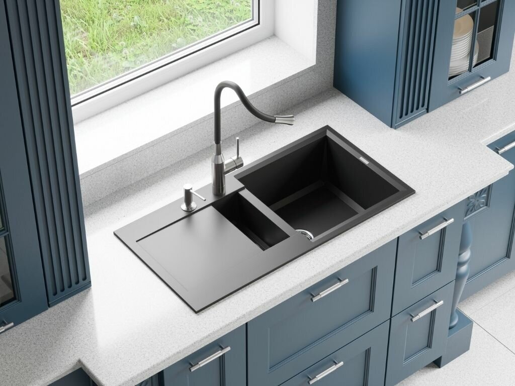 - Материал выдерживает высокие температуры до 280°С (но не стоит ставить на поверхность мойки горячие сковородки и кастрюли, т.к их температура может достигать 500°С).