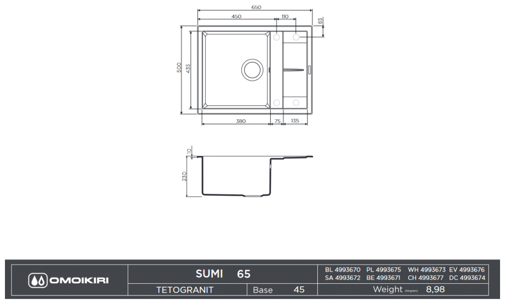Скачать документы для Кухонная мойка Omoikiri Sumi 65-CH шампань 4993677