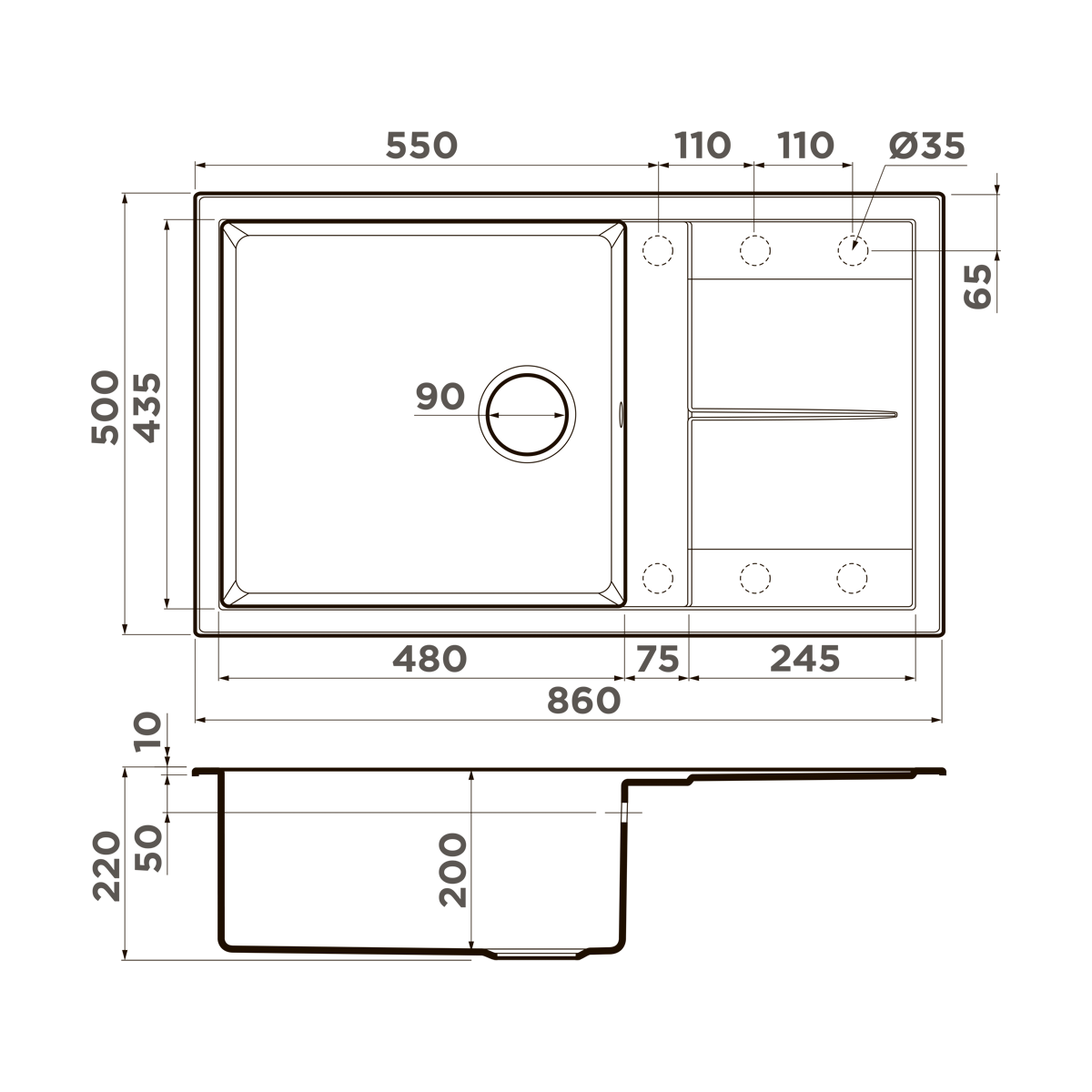 - Материал выдерживает высокие температуры до 280°С (но не стоит ставить на поверхность мойки горячие сковородки и кастрюли, т.к их температура может достигать 500°С).