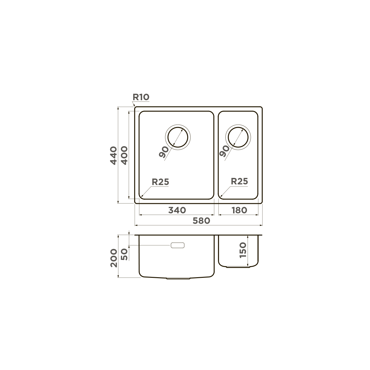 - Кухонная мойка изготовлена из высококачественной хромоникелевой нержавеющей стали SUS304. Она содержит 18% хрома и 8% никеля, что обеспечивает её максимальную защиту от коррозии;