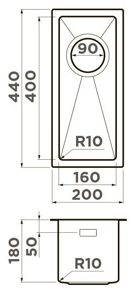 - Кухонная мойка изготовлена из высококачественной хромоникелевой нержавеющей стали SUS304. Она содержит 18% хрома и 8% никеля, что обеспечивает её максимальную защиту от коррозии;