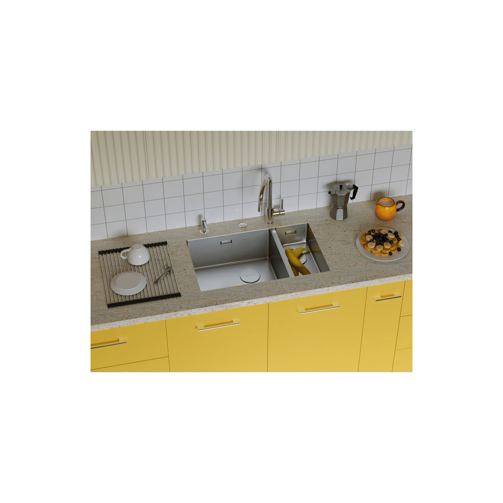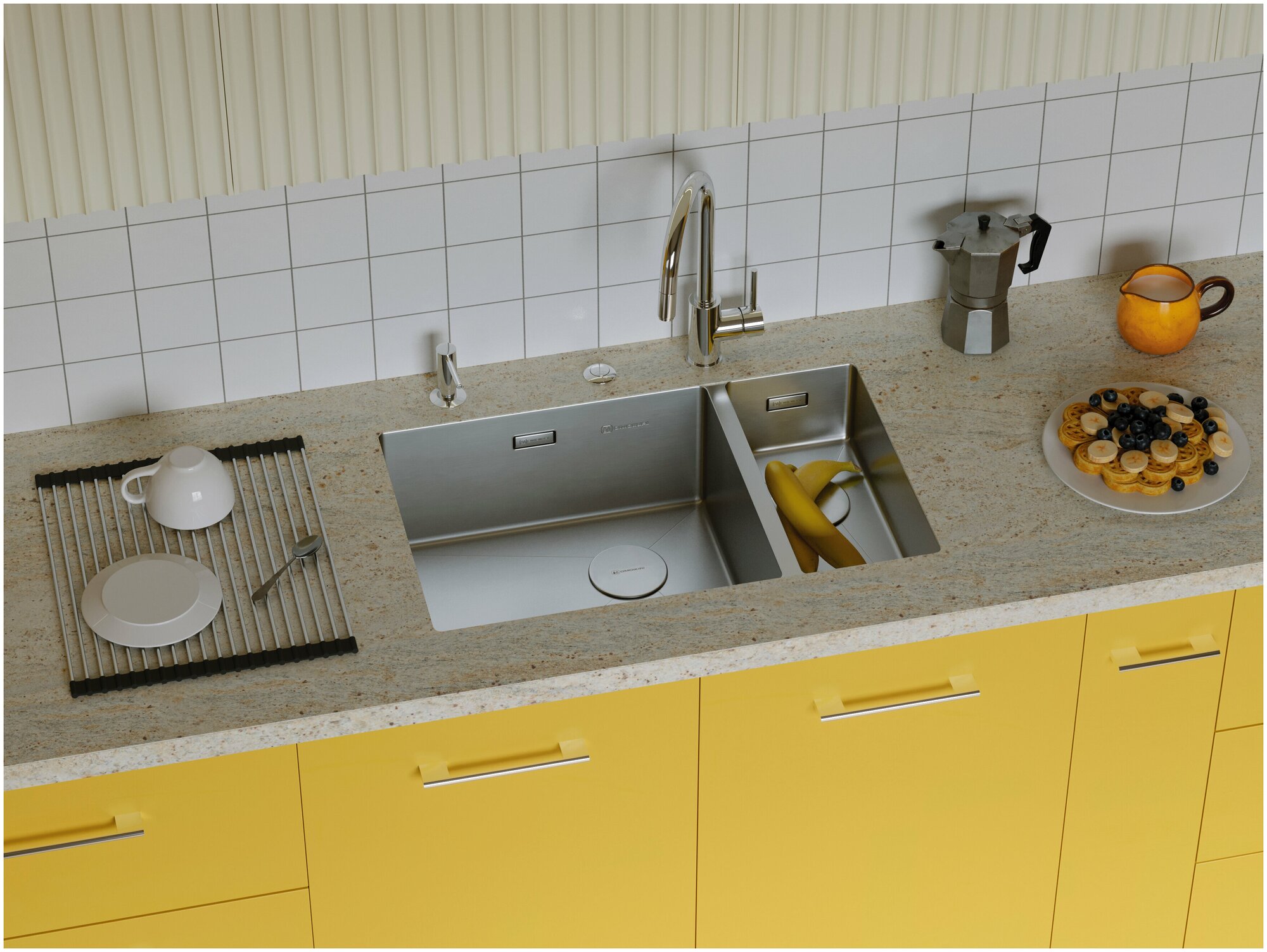 - Кухонная мойка изготовлена из высококачественной хромоникелевой нержавеющей стали SUS304. Она содержит 18% хрома и 8% никеля, что обеспечивает её максимальную защиту от коррозии;