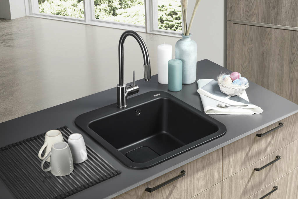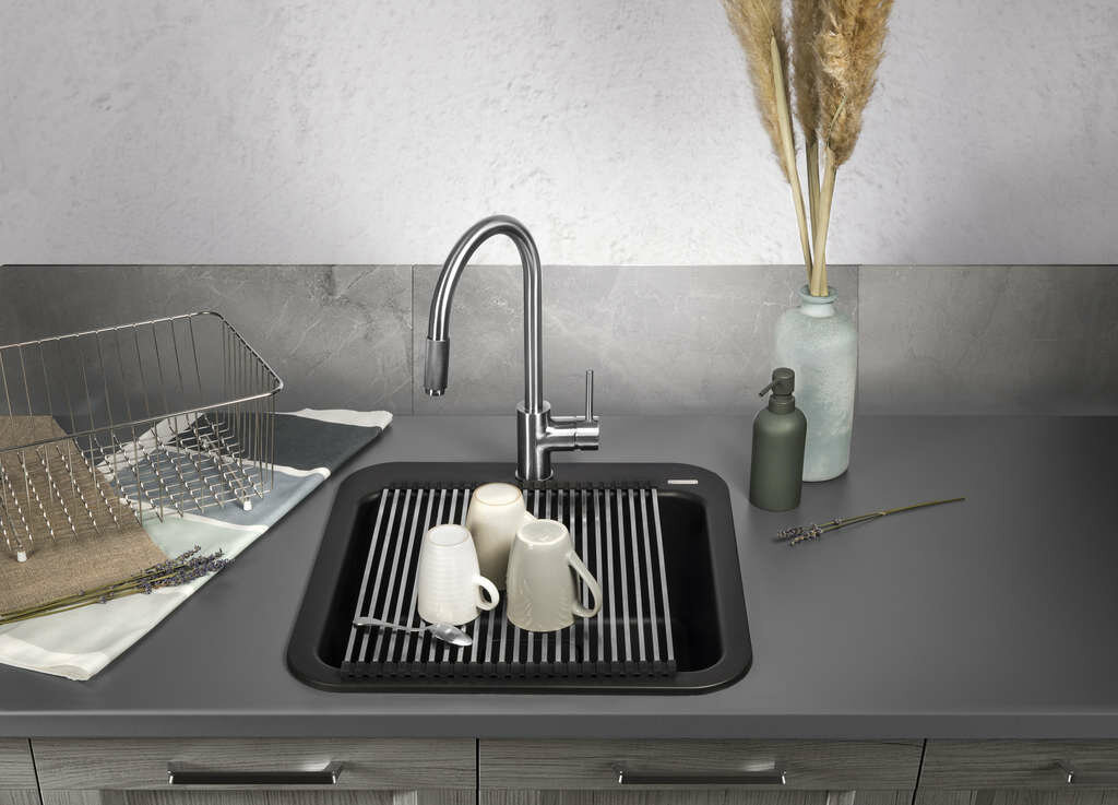 - Помимо гранита, в состав материала входит молотый кварц мельчайших размеров, которому характерны непревзойденная прочность и устойчивость к природным и химическим воздействиям. Свойства данного компонента вместе с долговечностью гранита обеспечивают мойке прочность и делают её устойчивой к любым механическим повреждениям: деформациям, сколам;