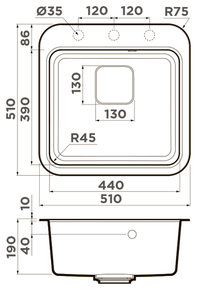 Комплектация - Мойка - 1 шт. Сифон - 1 шт. Слив-перелив - 1 шт. Корзинчатый вентиль - 1 шт. Комплект креплений - 1 шт. Инструкция - 1 шт.;Оснащение - сифон/сливная арматура/крепления; Монтажная длина - 51; Монтажная ширина - 51