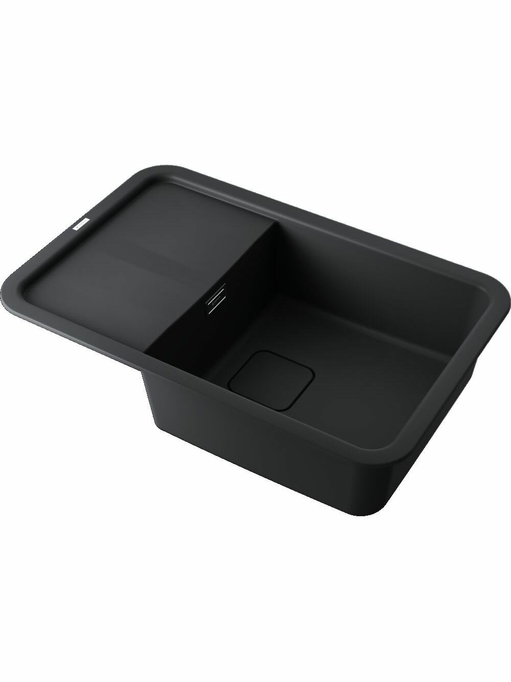 - Кухонная мойка изготовлена из матриала «Artgranit», технология производства которого заключается в том, что частицы кварца, гранита и прочного связующего полимера нового поколения, свойства которого похожи на акриловую смолу, соединяют вместе и помещают в форму. После застывания получается готовая мойка;