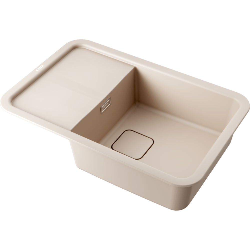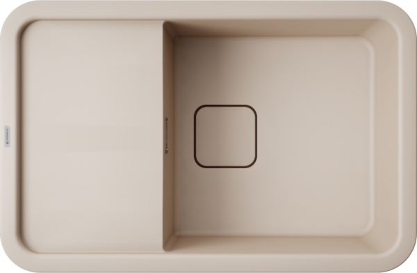- Кухонная мойка изготовлена из матриала «Artgranit», технология производства которого заключается в том, что частицы кварца, гранита и прочного связующего полимера нового поколения, свойства которого похожи на акриловую смолу, соединяют вместе и помещают в форму. После застывания получается готовая мойка;