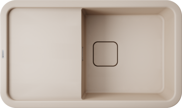 - Кухонная мойка изготовлена из матриала «Artgranit», технология производства которого заключается в том, что частицы кварца, гранита и прочного связующего полимера нового поколения, свойства которого похожи на акриловую смолу, соединяют вместе и помещают в форму. После застывания получается готовая мойка;