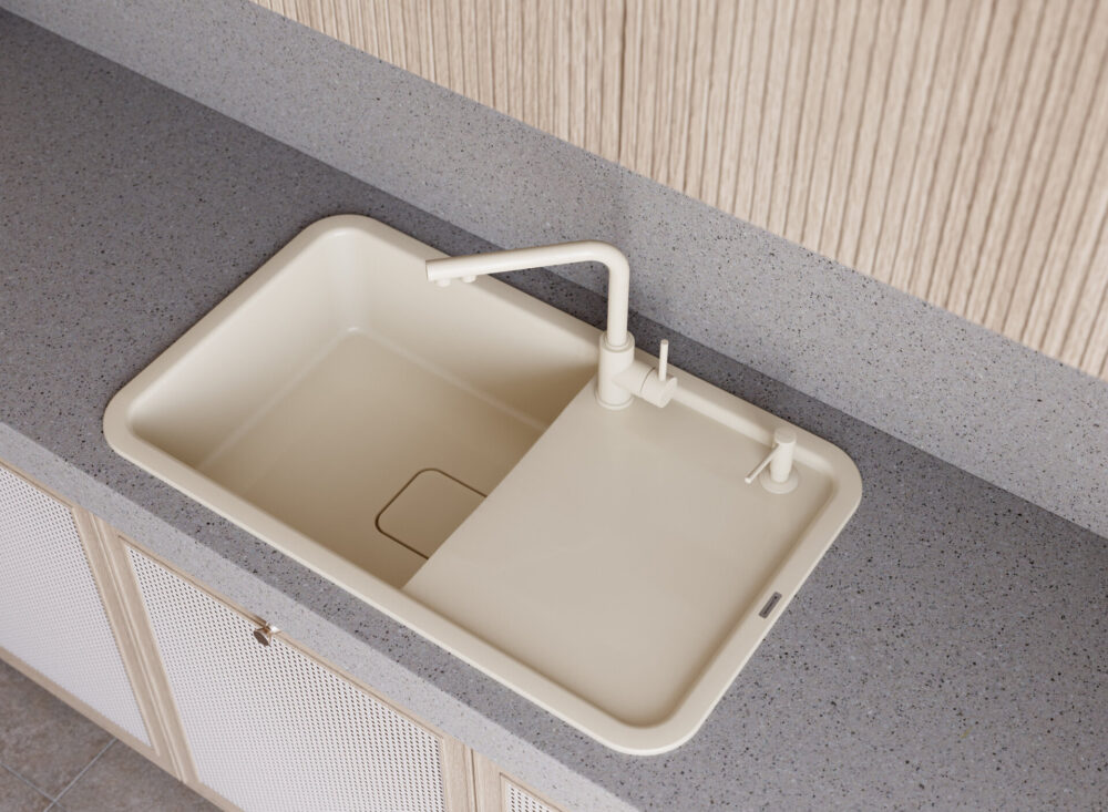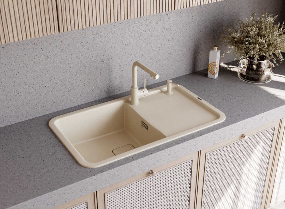 - Помимо гранита, в состав материала входит молотый кварц мельчайших размеров, которому характерны непревзойденная прочность и устойчивость к природным и химическим воздействиям. Свойства данного компонента вместе с долговечностью гранита обеспечивают мойке прочность и делают её устойчивой к любым механическим повреждениям: деформациям, сколам;
