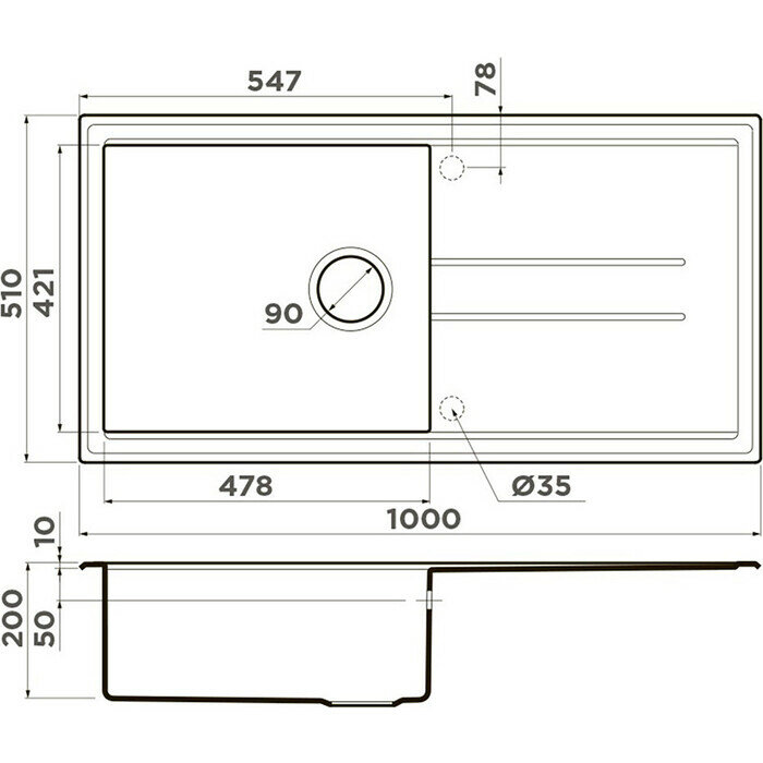 - Мойка черного цвета создана из материала «Tetogranit Metal». В его составе: акриловая смола и натуральный гранит с добавлением металлических частиц, которые придают блеск и мерцание поверхности мойки. «Tetogranit Metal» отличается максимальной устойчивостью к температурным перепадам и ударам;
