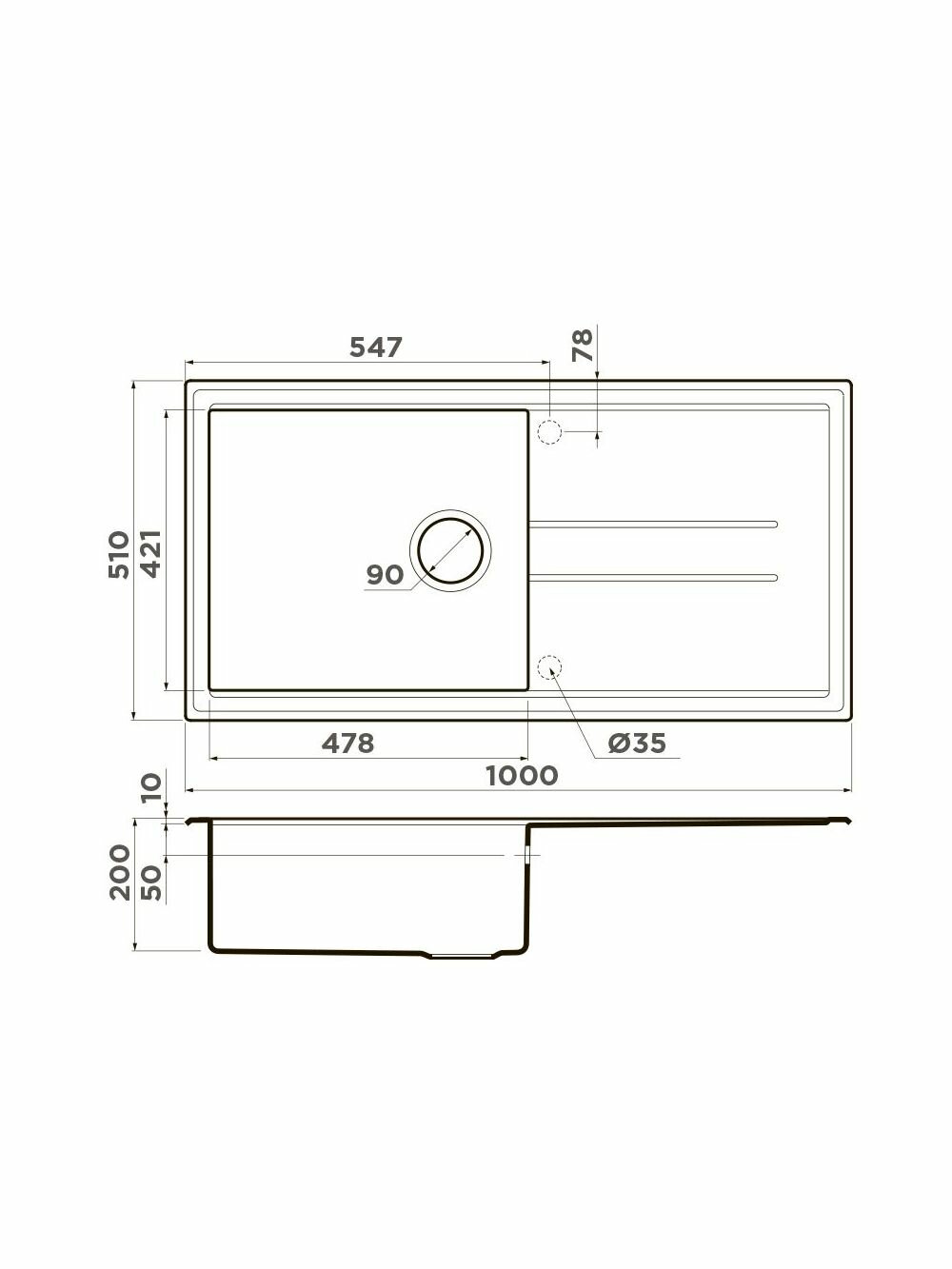 - Мойка черного цвета создана из материала «Tetogranit Metal». В его составе: акриловая смола и натуральный гранит с добавлением металлических частиц, которые придают блеск и мерцание поверхности мойки. «Tetogranit Metal» отличается максимальной устойчивостью к температурным перепадам и ударам;