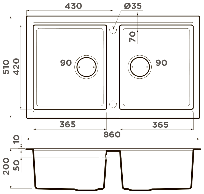 - Материал выдерживает высокие температуры до 280°С (но не стоит ставить на поверхность мойки горячие сковородки и кастрюли, т.к их температура может достигать 500°С).