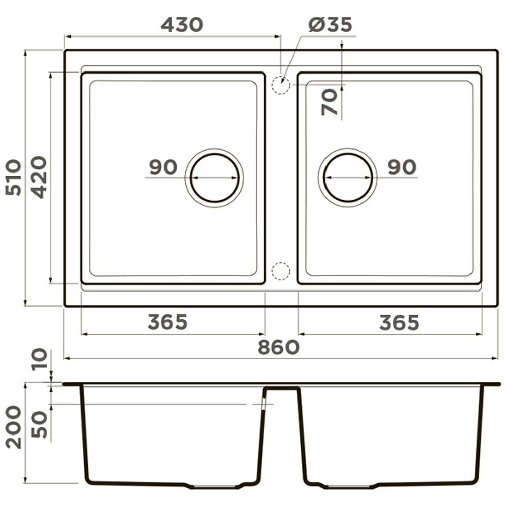 - Мойка черного цвета создана из материала «Tetogranit Metal». В его составе: акриловая смола и натуральный гранит с добавлением металлических частиц, которые придают блеск и мерцание поверхности мойки. «Tetogranit Metal» отличается максимальной устойчивостью к температурным перепадам и ударам;