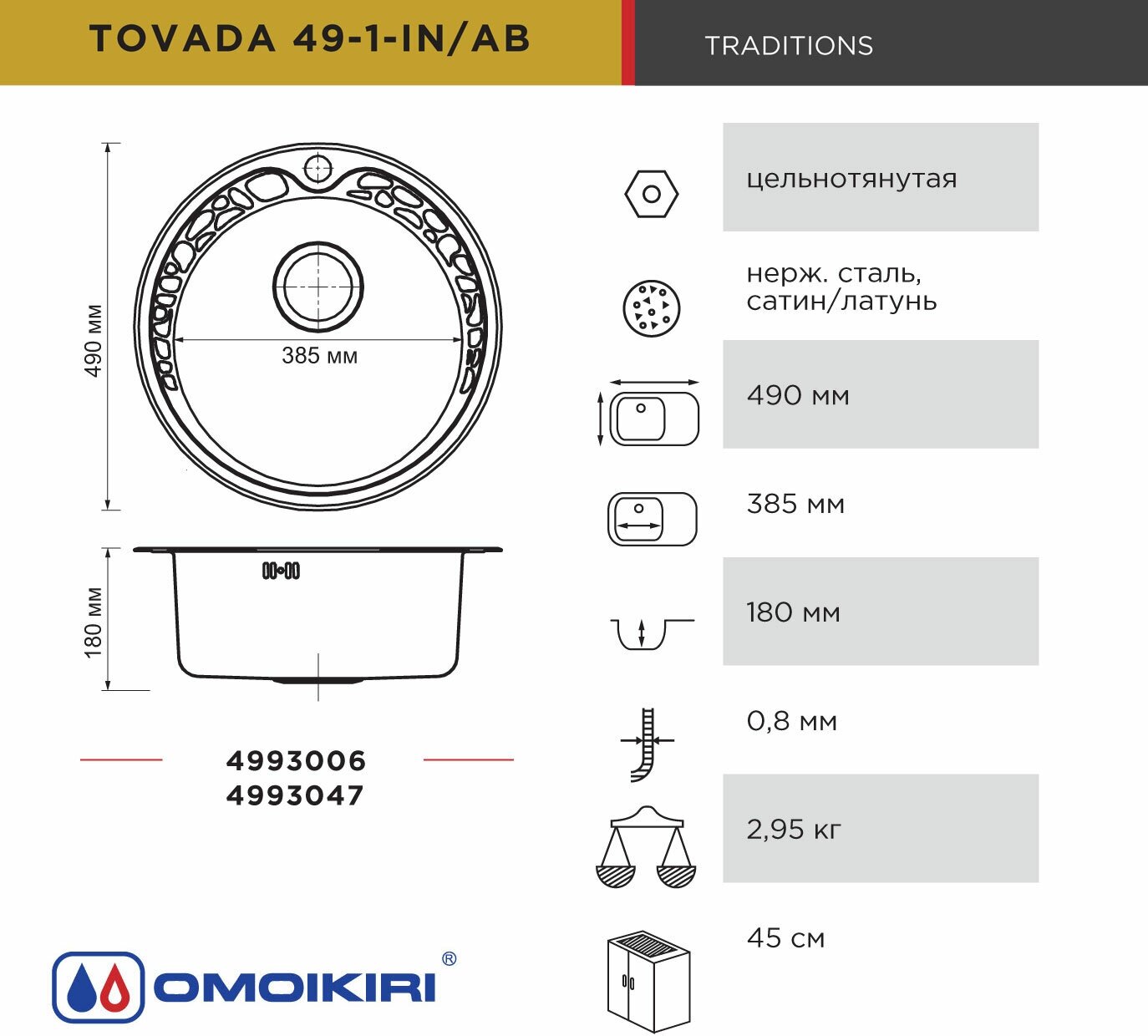 Скачать документы для Кухонная мойка Omoikiri Tovada OTO-49-1-IN нерж.сталь 4993006