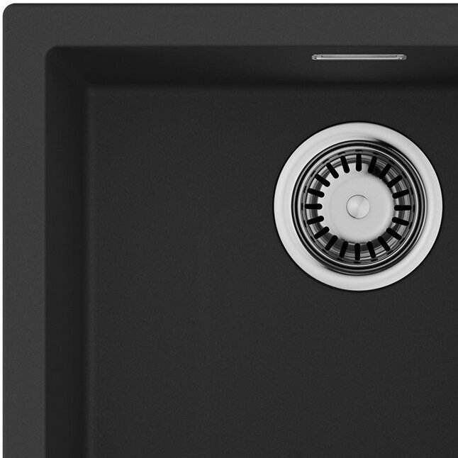 - Мойка черного цвета создана из материала «Tetogranit Metal». В его составе: акриловая смола и натуральный гранит с добавлением металлических частиц, которые придают блеск и мерцание поверхности мойки. «Tetogranit Metal» отличается максимальной устойчивостью к температурным перепадам и ударам;