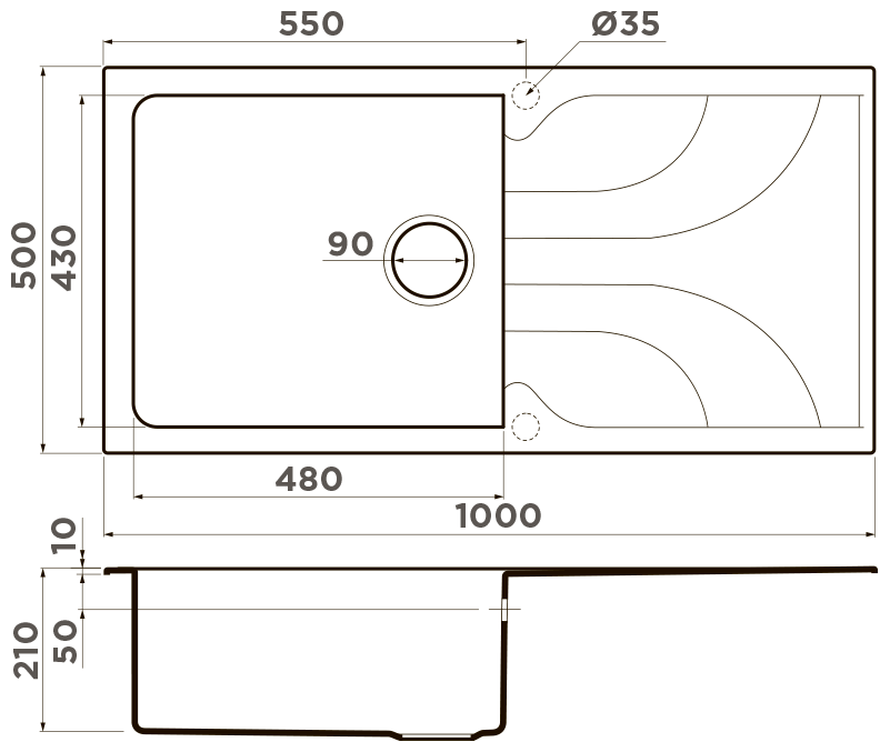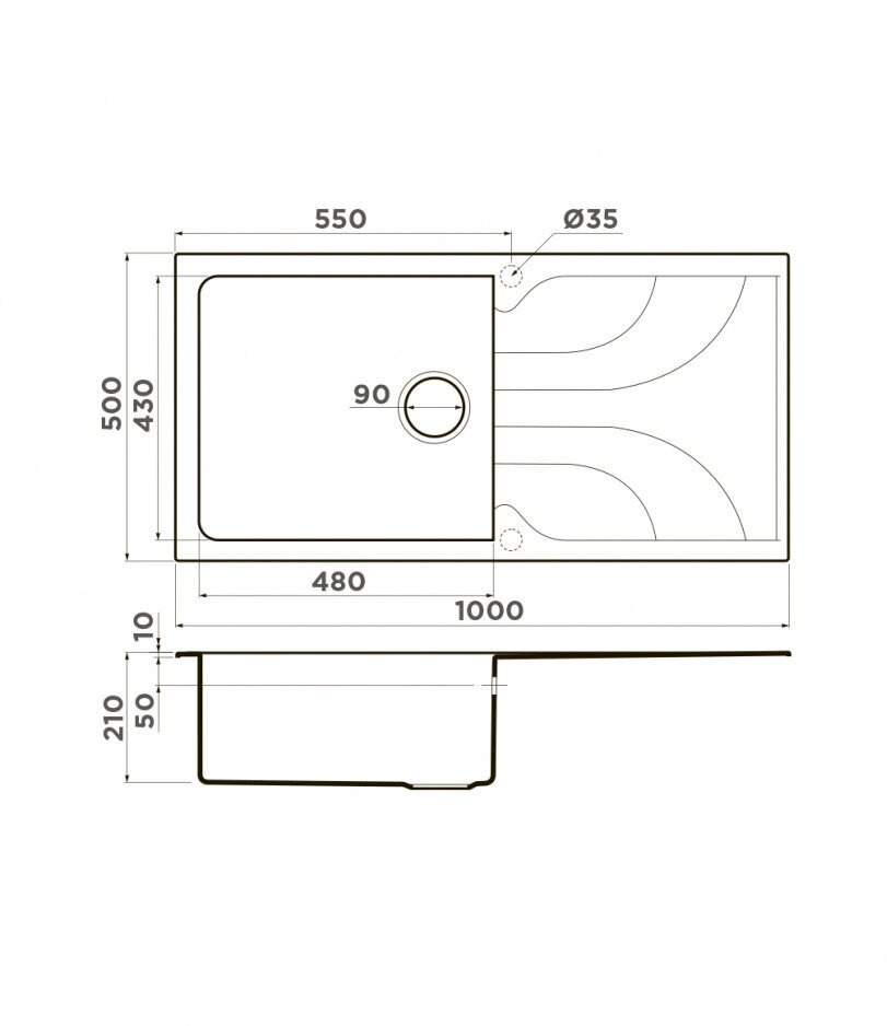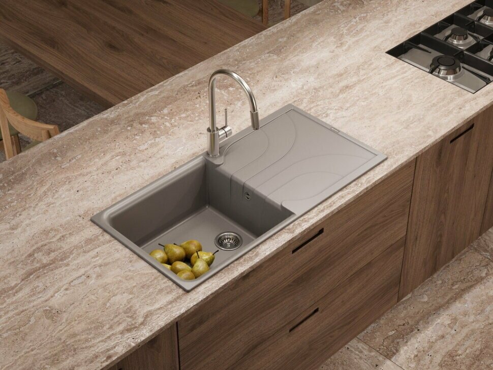 - Материал выдерживает высокие температуры до 280°С (но не стоит ставить на поверхность мойки горячие сковородки и кастрюли, т.к их температура может достигать 500°С).
