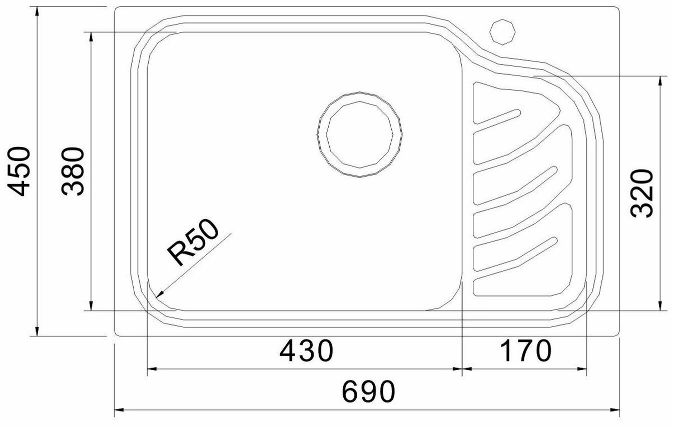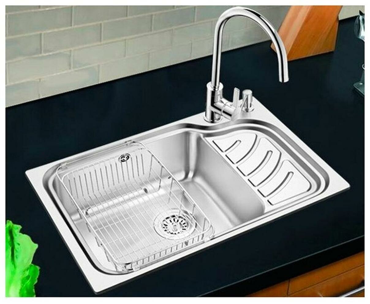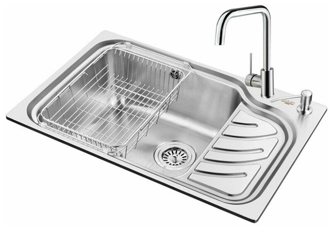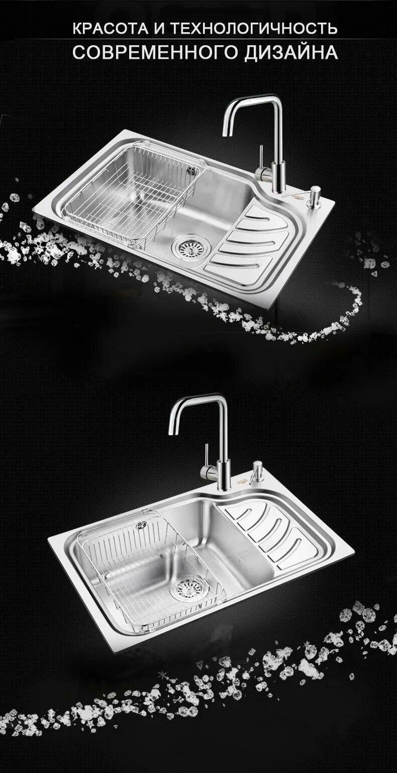 Большая и глубокая раковина. Даже половина противня влазиет. Что уж говорить об кастрюлях и сковородах.