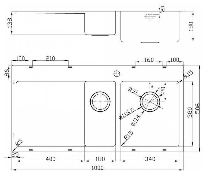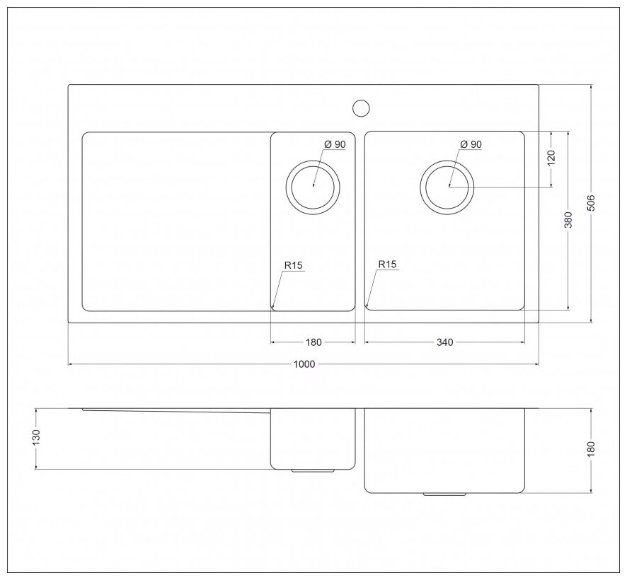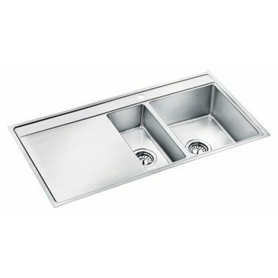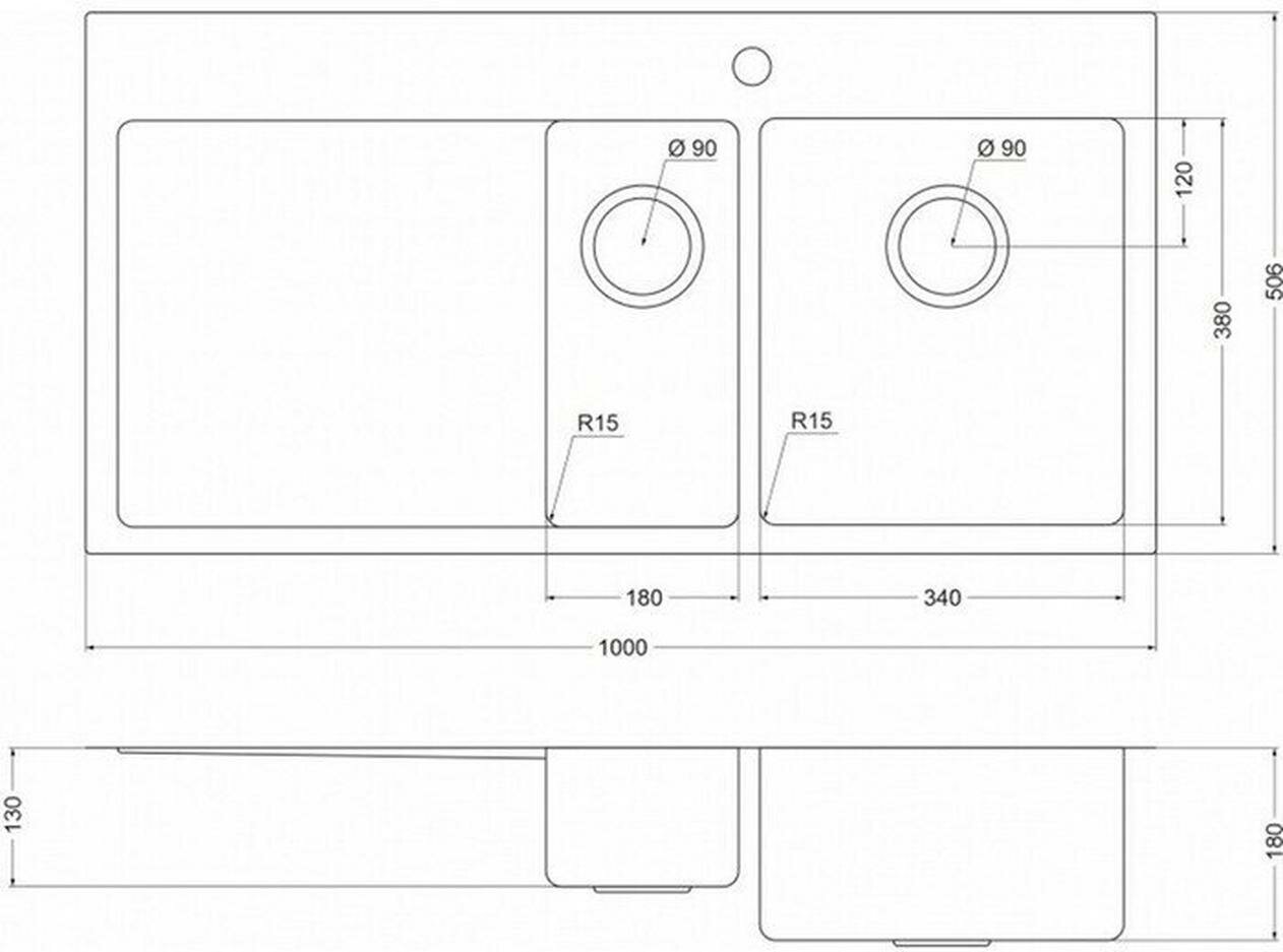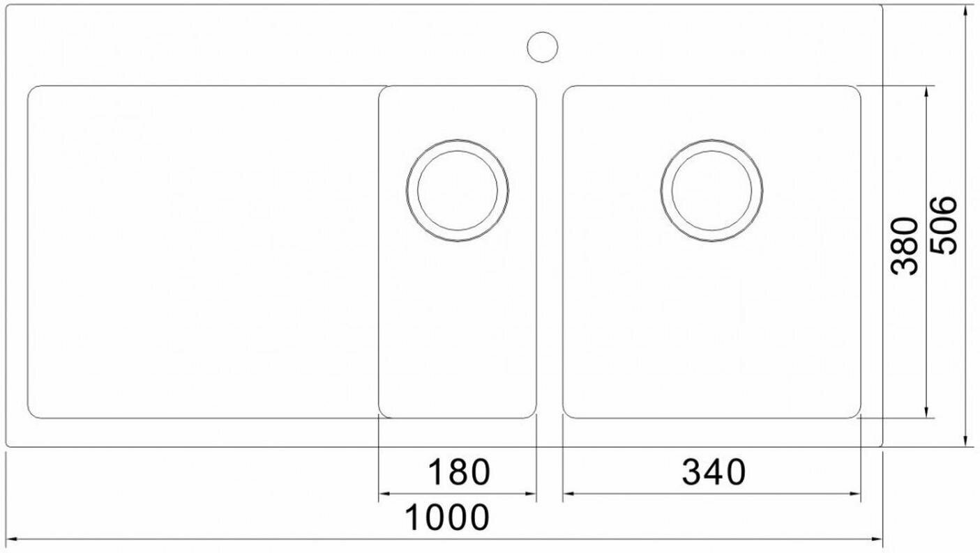 дополнительная чаша, Матовая, Нет, С сифоном, корзинчатый вентиль, отверстие под смеситель, сливная арматура