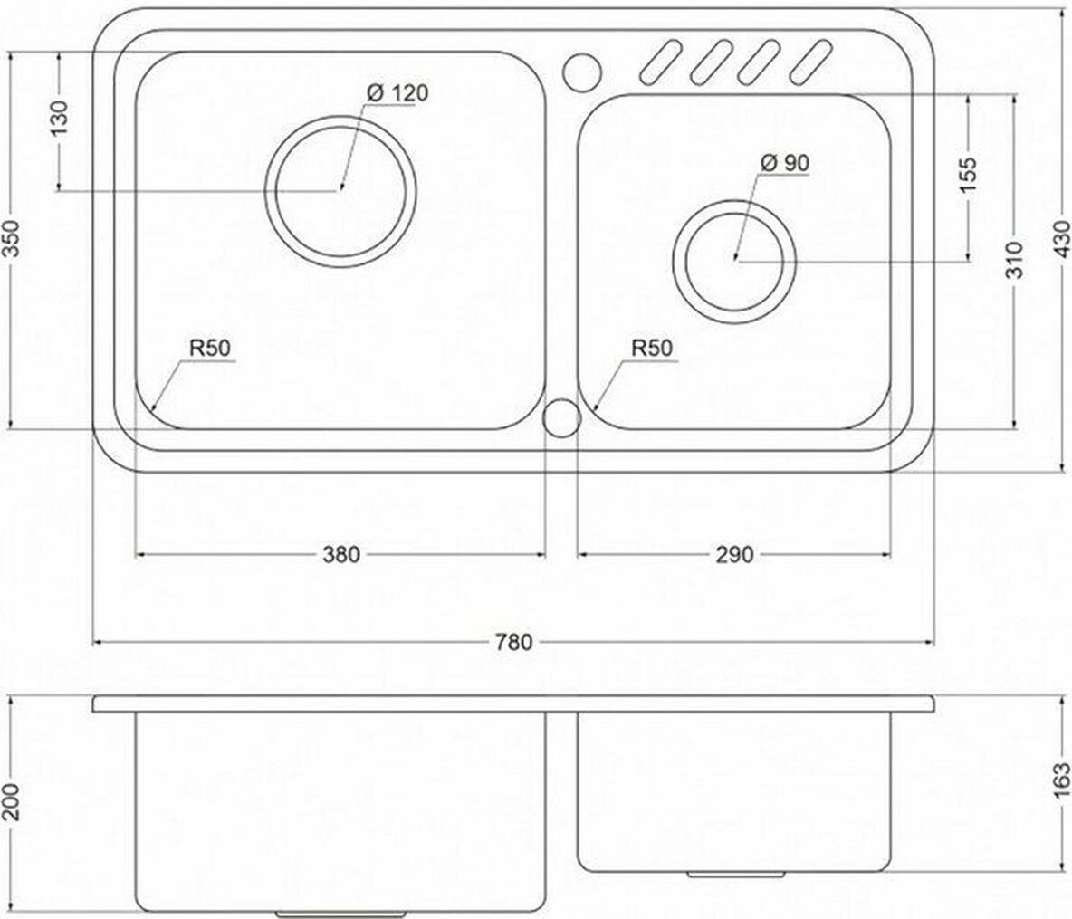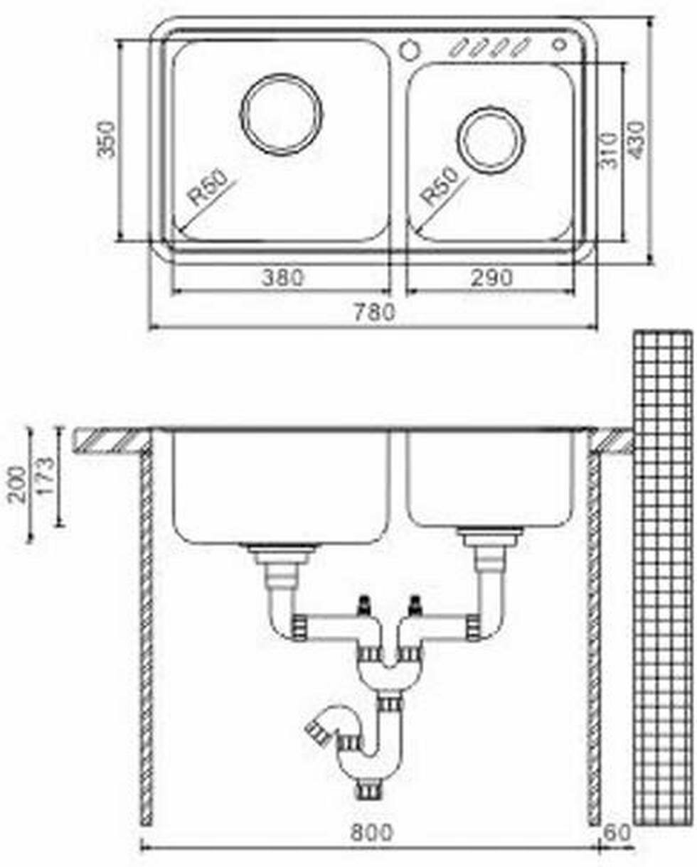 дополнительная чаша, Матовая, Нет, С сифоном, клапан-автомат, корзинчатый вентиль, отверстие под смеситель, сливная арматура, стандартная