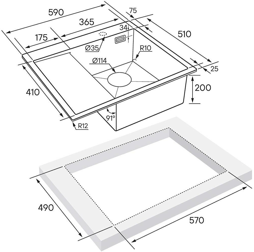 Комплект крепежей для врезного монтажа, Отводная арматура (слив-перелив), Сифон бутылочного типа с подключением посудомоечной машины (ПММ).